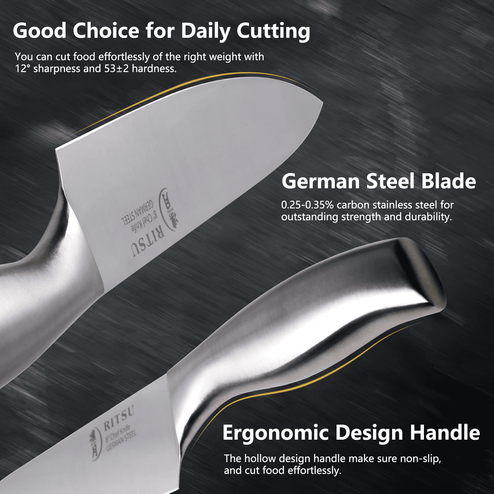 RITSU German Steel Kitchen Knife Set with Wooden Block