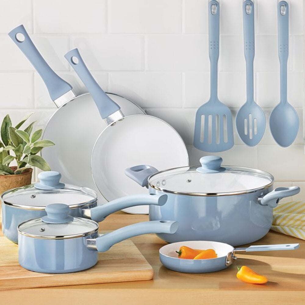 12pc Ceramic Cookware Set; Blue Linen