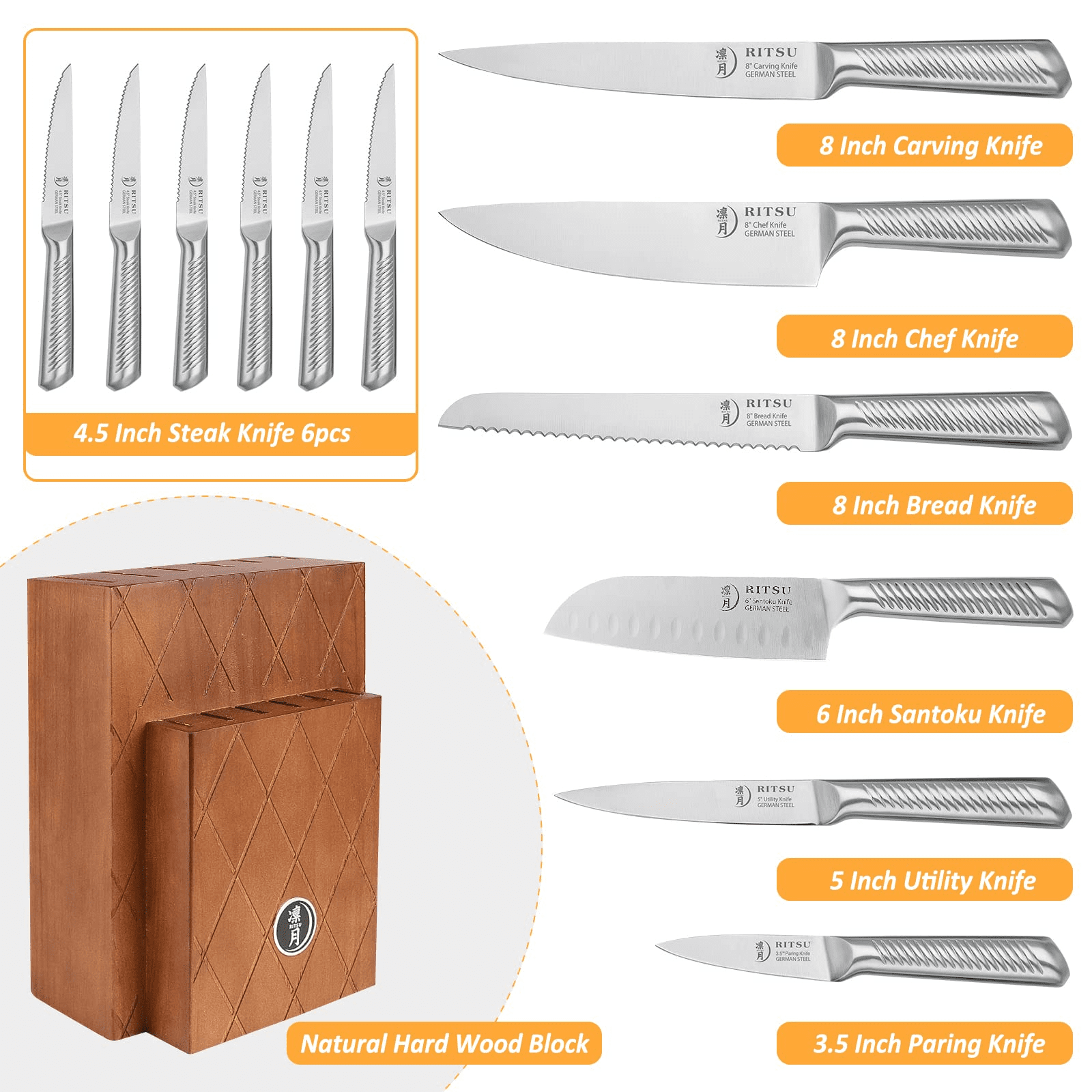 RITSU German Steel Kitchen Knife Set with Wooden Block