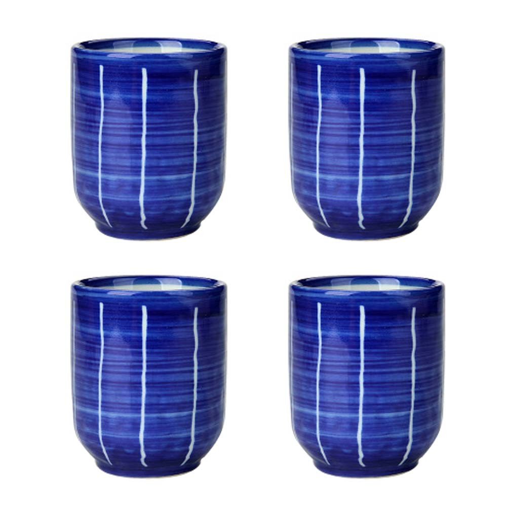 Home > 4Pcs Japanese Style Blue Ceramic Teacups Small Straight Wine Cups 150ML