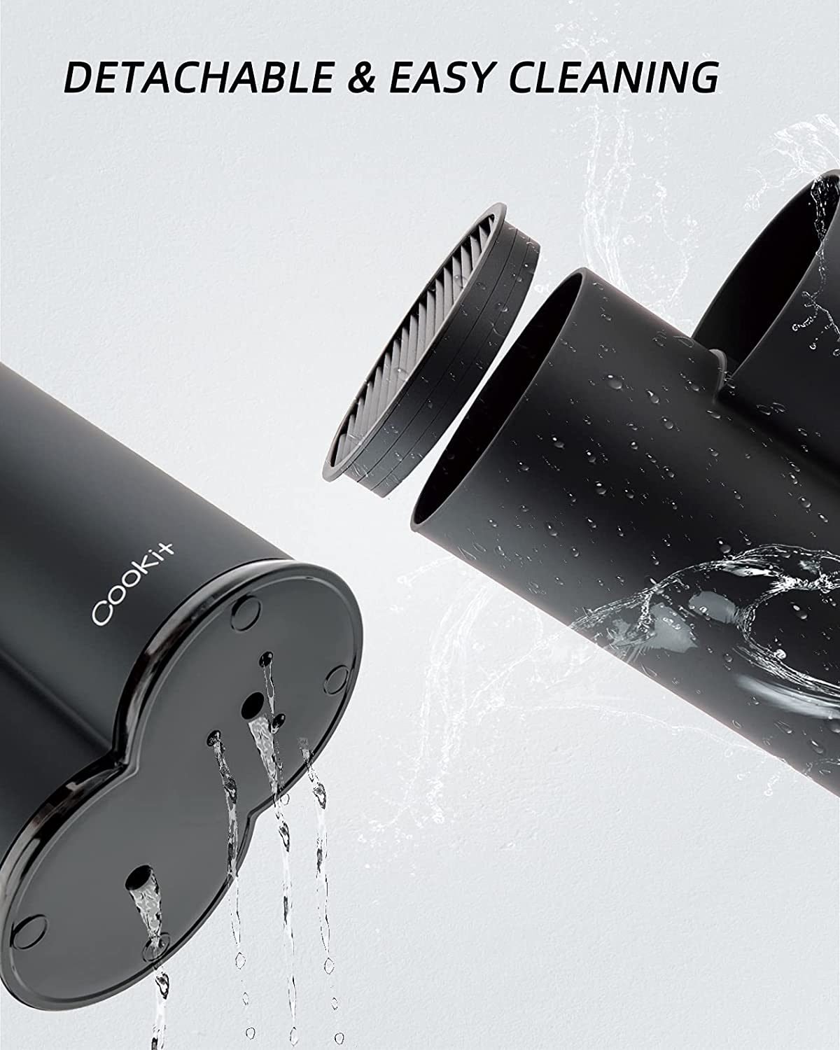 EASY CLEANING AND DRY - The knife holder top is detachable with drainage holes, it can be washed easily and dry fast. The weight gaining bottom enhances the stability when removing the knife and avoid scratching the counter