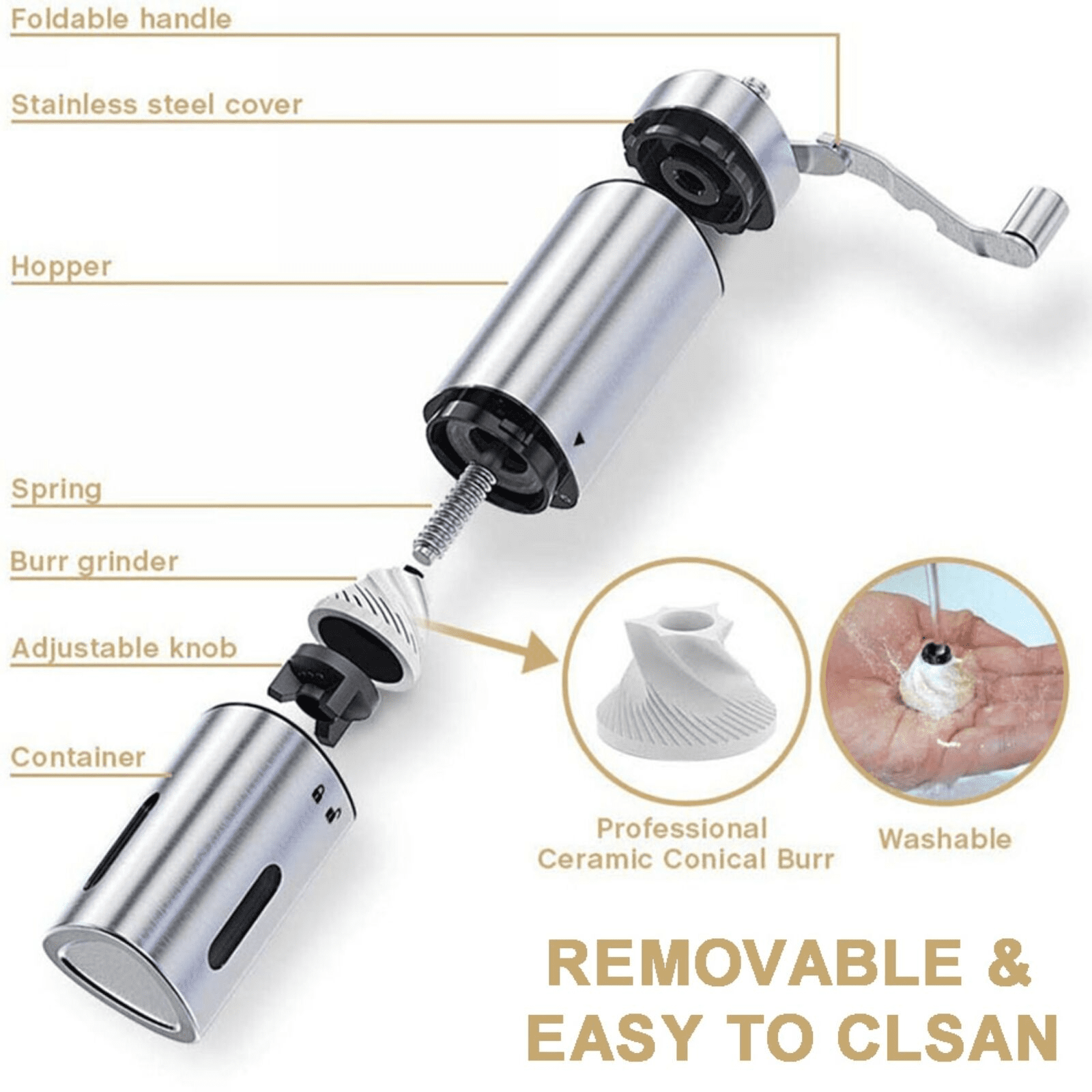 Home > Hand Crank Pepper Conical Burr Grinder Coffee Beans Mill Muller Stainless Steel