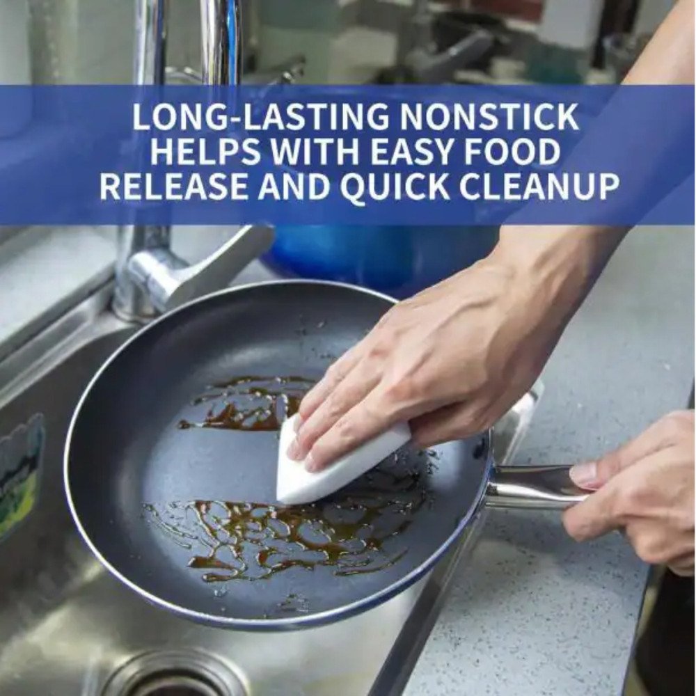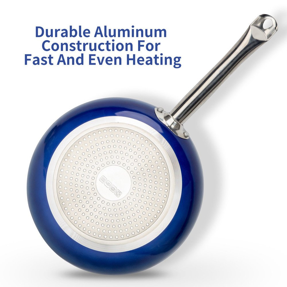 Durable Non-stick Coating: The cookware set is coated with nonstick interior to prevent food from sticking and make the food slide smoothly when cooking. The non-stick coating also has a feature of scratch resistant to use longer while giving it a maximum performance to save the oil and clean up easily.