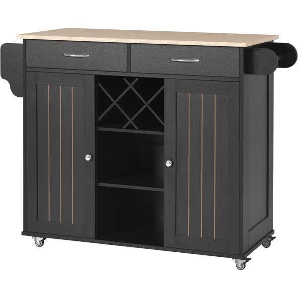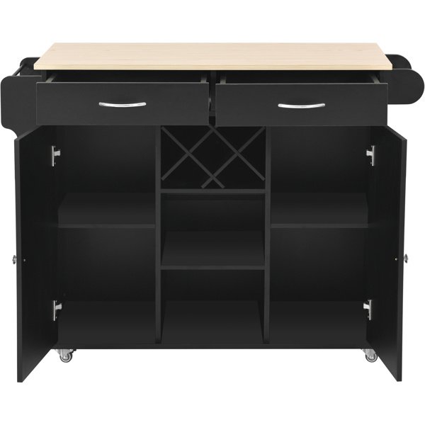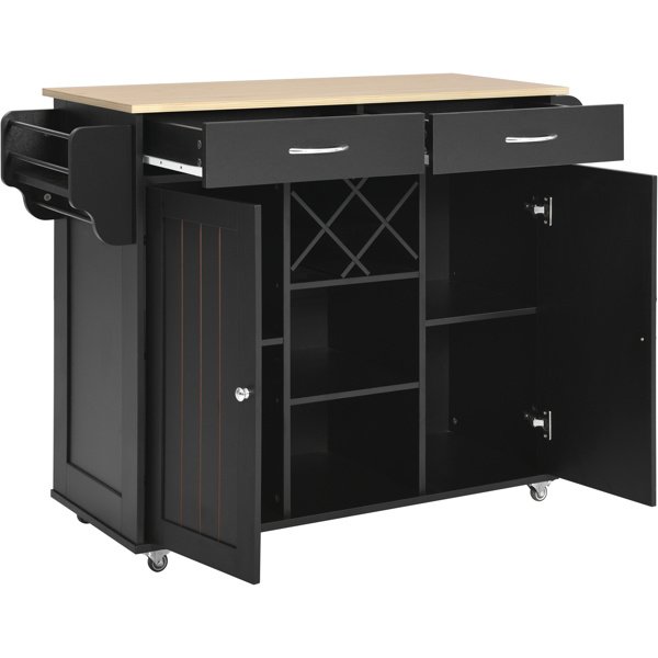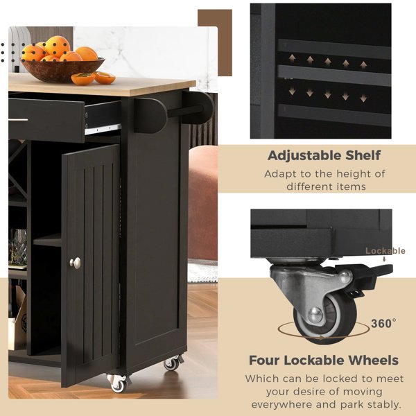 [Materials]Kitchen island cart features as medium density fiberboard made for its sturdy and durable; which it load capacity up to 220lbs; Desktop made of fiberboard with veneering process; which is smooth and flat; heat and moisture resistant.