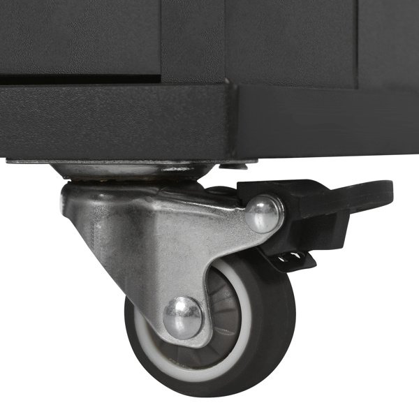 [Four Locking Wheels]The kitchen cart is designed with 4 smooth wheels; all of which can be locked to meet your desire of moving everywhere and park stably. High quality rubber wheels allow you to move on the ground without too much noise for better move.