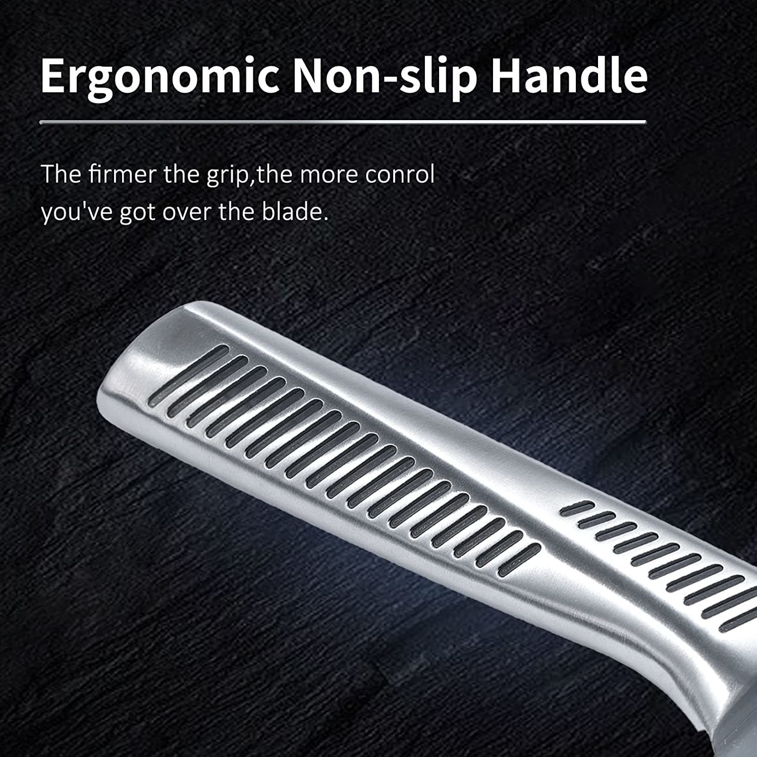 Stainless Steel Hollow Handle with a full tang knife blade provides maximum comfort and stability while cutting; which can enjoy cooking more faster ans easier.