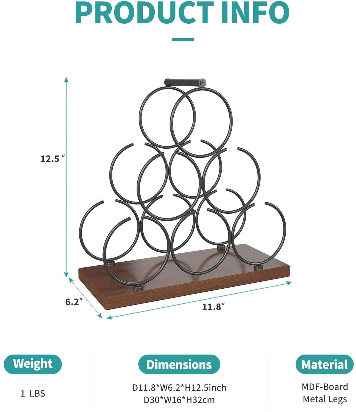 1.[DURABLE STRUCTURE]Mecor countertop bottle rack made of premium iron and wood material, sturdy design prevents your bottle from wobbling, tilting, or falling.
