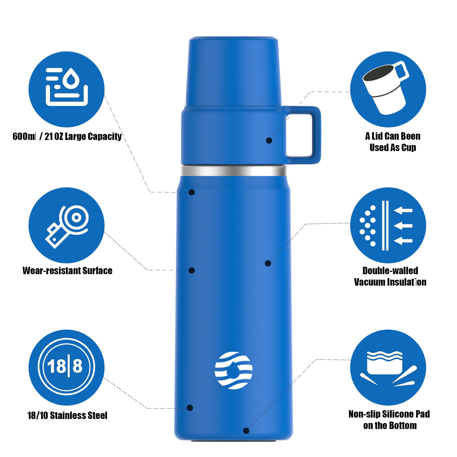 1.KEEPS YOUR DRINK HOT OVER 24 HOURS: Healter Vacuum Bottle is made with superior insulation,vacuum insulation creates an airless space between two walls, virtually eliminating the convection process and temperature change that keeps liquids (soup, coffee, tea) hot or cold drinks cool for up to 24 hours It’s also made with BPA-free 316 stainless steel , keeping its contents safe to consume.