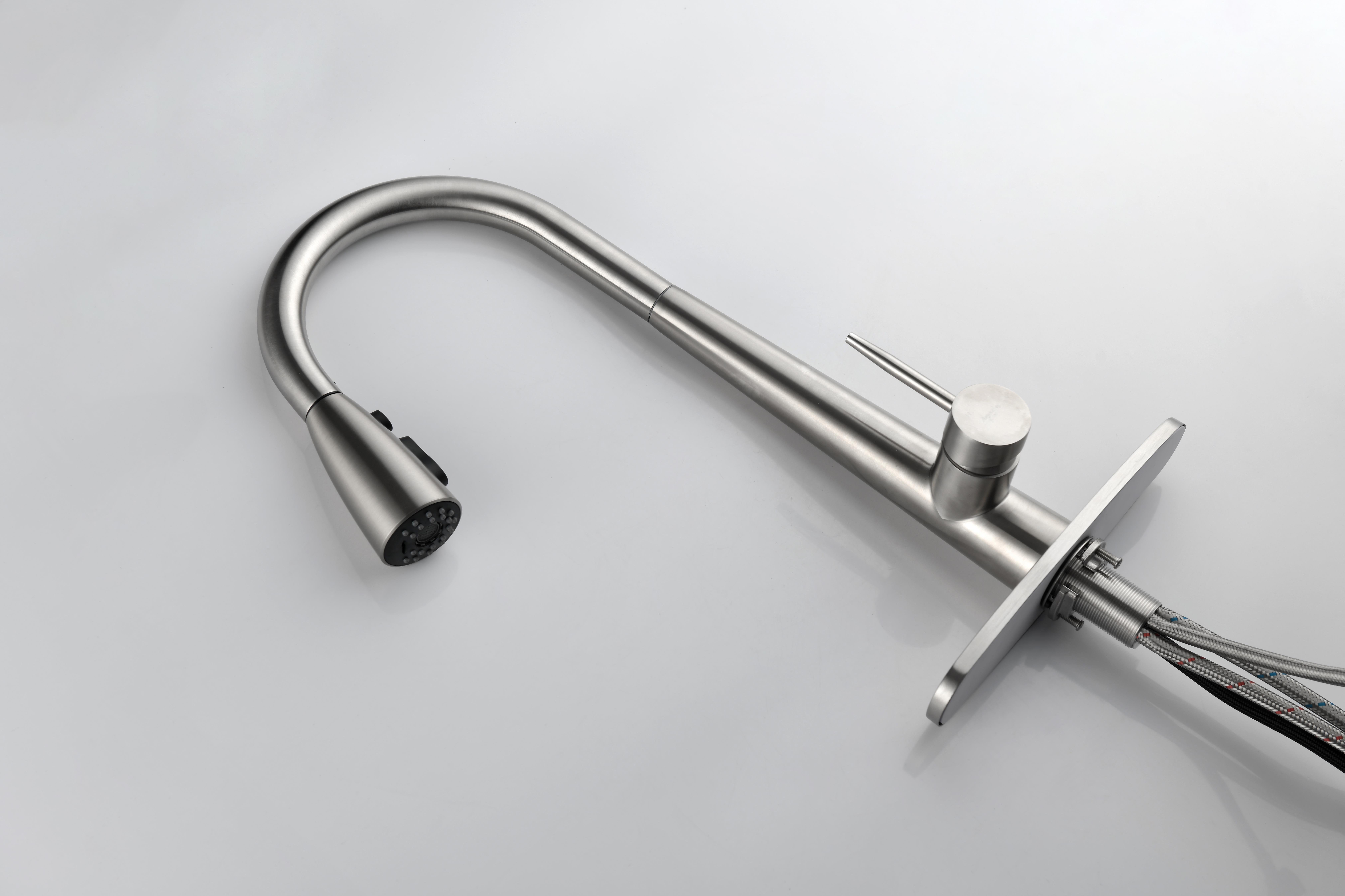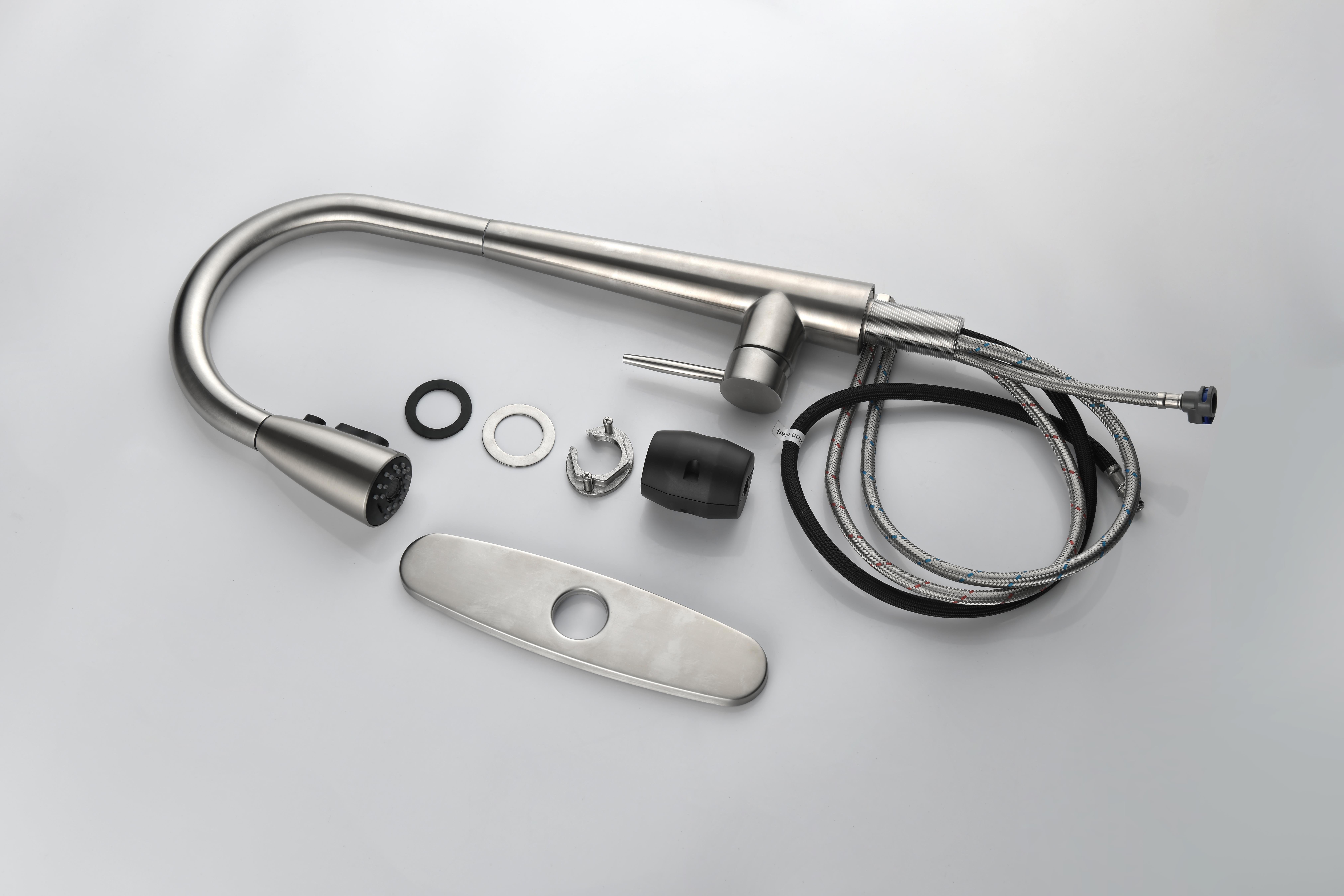 Home > Kitchen Faucet with Pull Down Sprayer ; High Arc Single Handle Kitchen Sink Faucet with Deck Plate; Commercial Modern Stainless Steel Kitchen Faucet