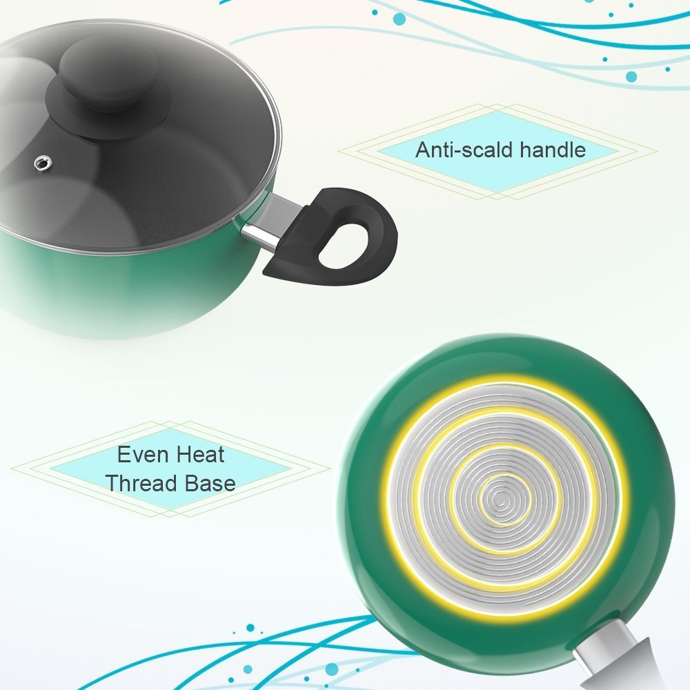 4.Spiral bottom heats evenly Compatible with gas, electric and glass cooktops, outdoor burners