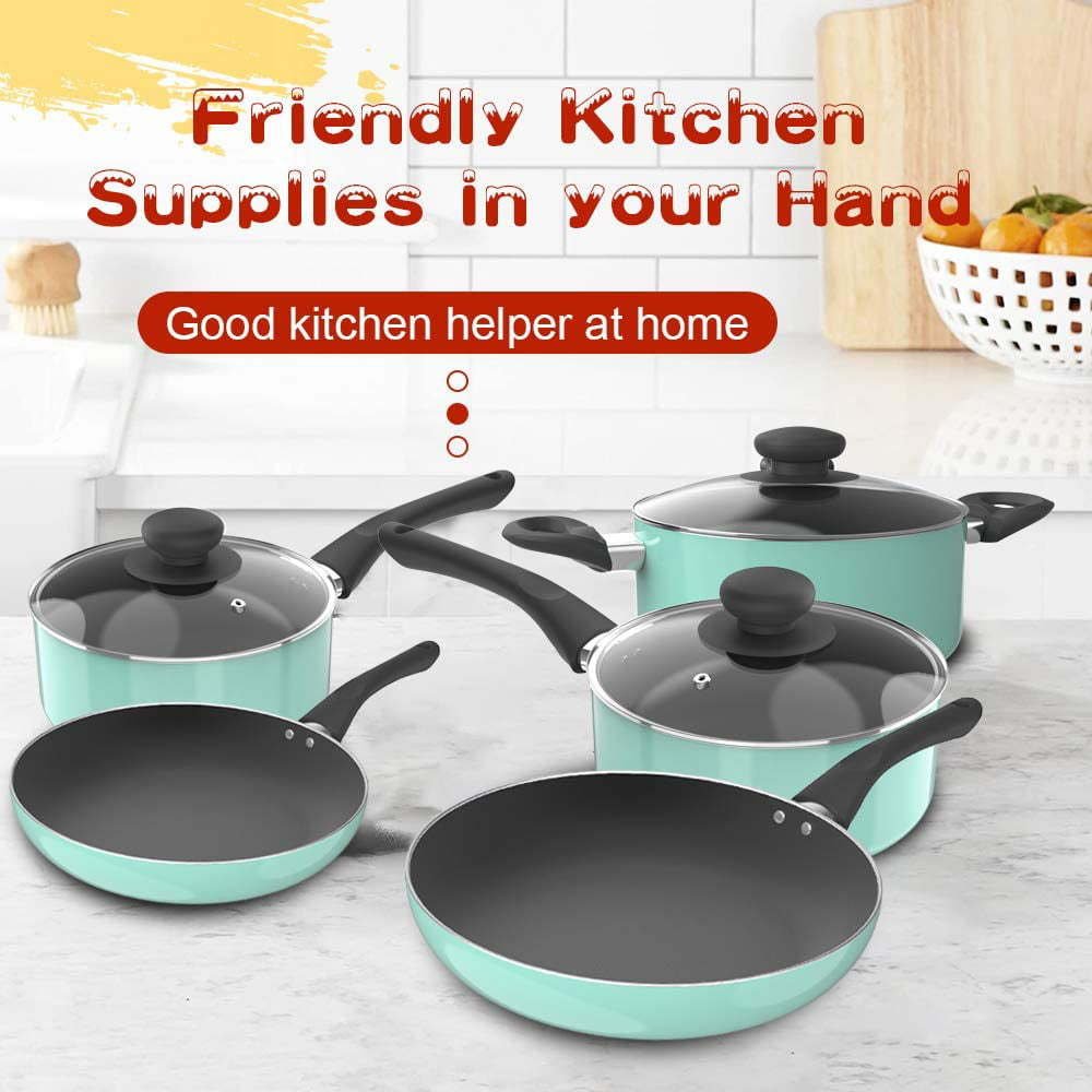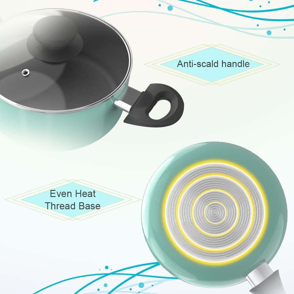 1.8-Piece Nonstick Cookware Set Includes 8-Inch Fry Pan, 10-Inch Fry Pan, 1.5-Quart Covered Mixing Pot, 2-Quart Covered Saucepan, and 3-Quart Covered Casserole