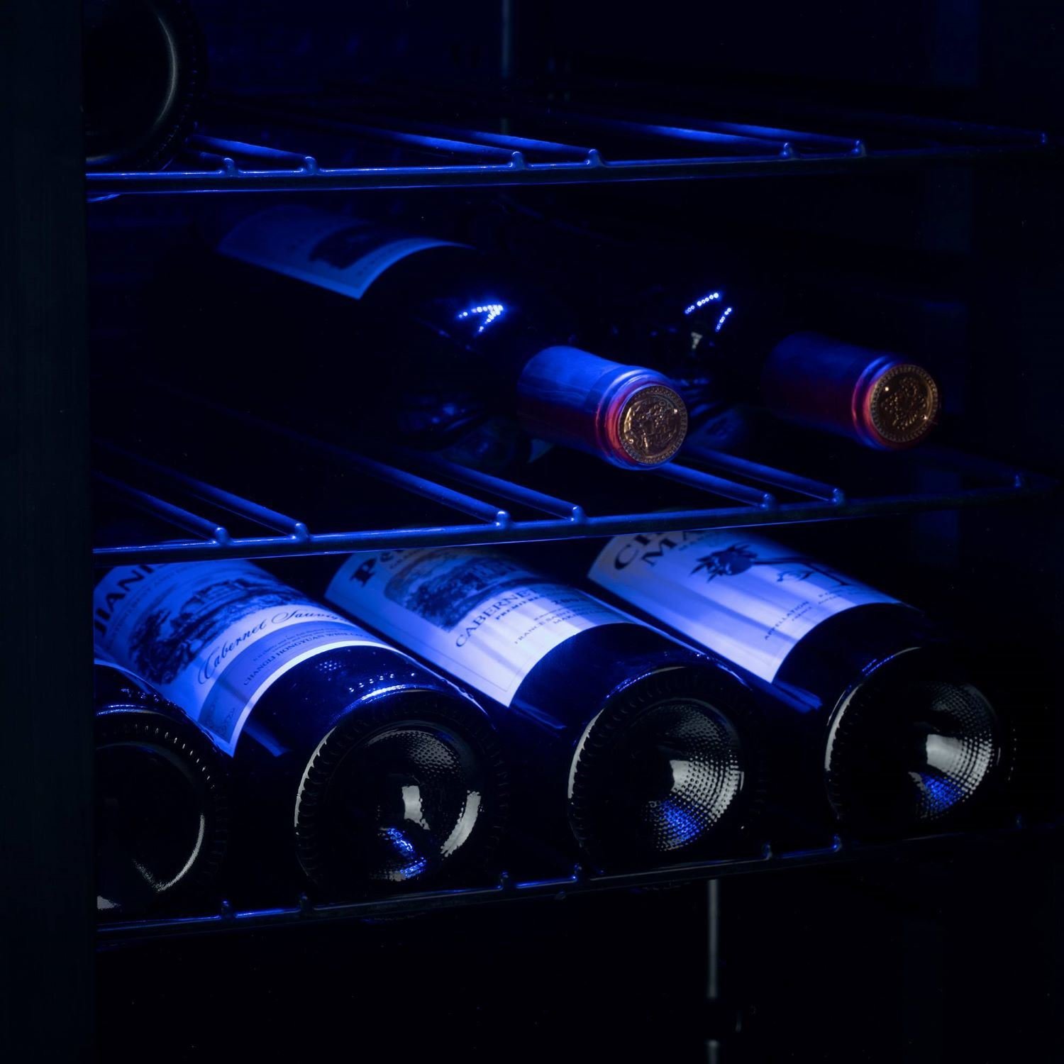 Energy Saving & Super Quiet - 95W power is more energy-saving, Our freestanding wine cooler consumes about 98 kWh of electricity a year. Wine cellar It's hard to notice when the compressor in the wine cabinet is working, it does not affect family rest even if placed in the bedroom.