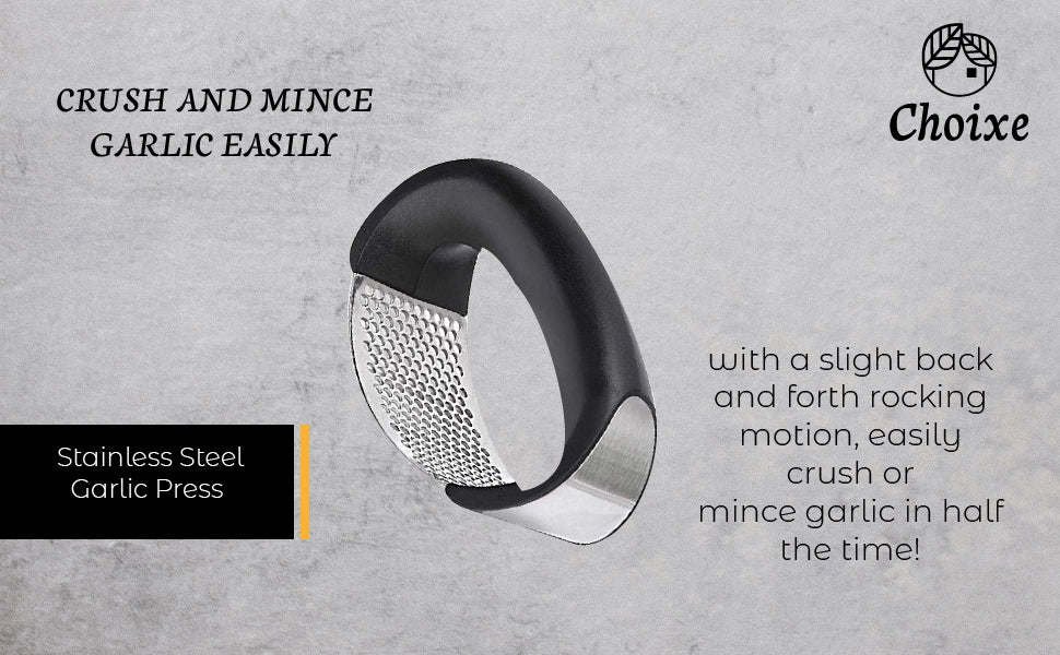CRUSH AND MINCE GARLIC EASILY with a slight back-and-forth rocking motion; easily crush or mince garlic in half the time!