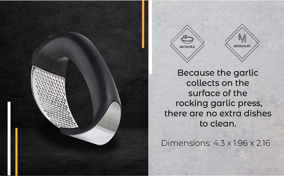 SUPER EASY CLEAN-UP AND STORE - Because the garlic collects on the surface of the rocking garlic press; there are no extra dishes to clean.