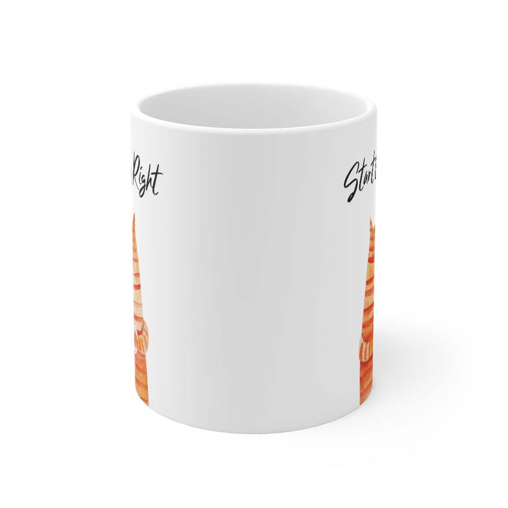 Start the Day Right Cat Holding Goldfish Coffee Tea Mug. Perfect for coffee, tea and hot chocolate, this classic shape white, durable ceramic mug.